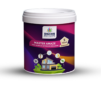 MASTER AMAZE 100% Acrylic Exterior Emulsion combines exceptional elegance with durability to keep exterior looking ever new. A water-based high-build 100% acrylic emulsion. Master No.1 (100% Acrylic) has outstanding anti-fungal, anti-flaking and anti-fading properties. Hair-line cracks are easily bridged because of excellent bonding, adhesion and plasticity. Broad spectrum biocides and fungicides curb the growth of fungi and algae. Besides, its unique “one-way barrier” special additives control the quality of the paint film – allows to ‘breathe out’ excess moisture, absorbing any-thus protecting the brickwork and concrete.