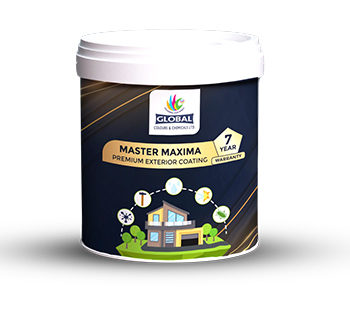 MASTER MAXIMA Premium Exterior Coating advanced anti-algal weather proof emulsion is a water based, modified acrylic anti-algal high performance exterior wall finish. Master Maxima incorporate the latest state of the art technology to provide long-lasting elegance for exteriors. Master Maxima meets exterior tropical conditions of India, using advanced and durable pigment and advanced chemistry ensures that exterior walls are provided with powder-packed resistance against ultraviolet degradation. It has very good dirt pick up resistance and dirt cleaning properties, water repellent, some elastomeric properties that reduce temperature 5 deg celsius in inner and outer surface.
